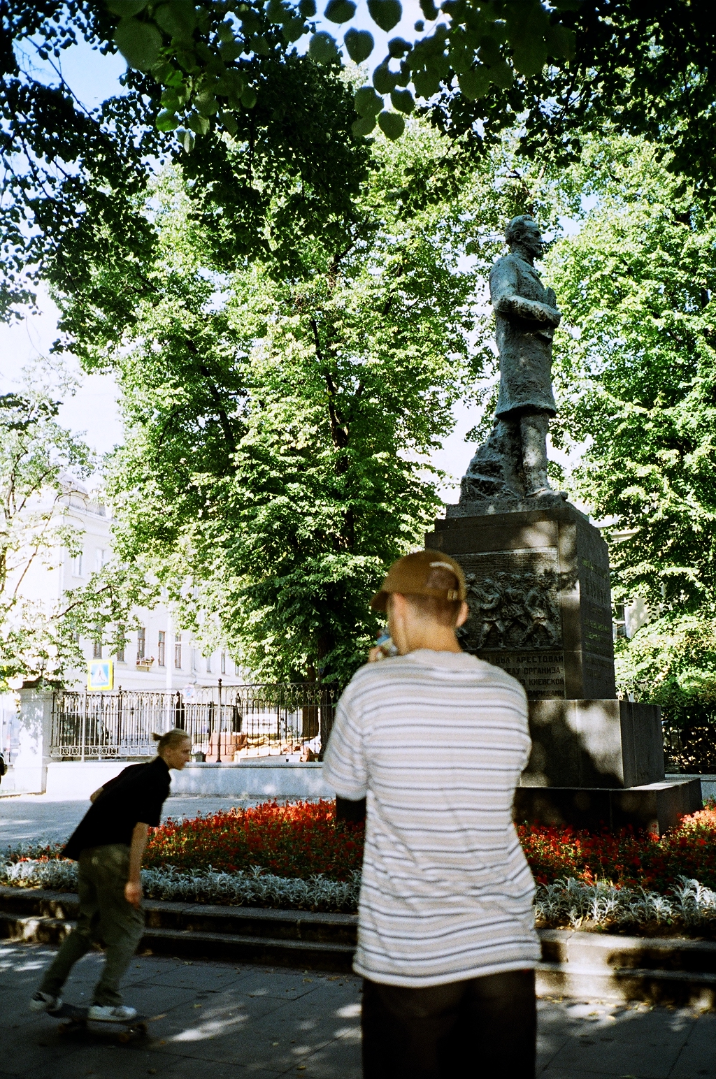 Quite quickly, we became interested in what other spots there were in the city. Because we became tired of all the spots in our own district. We started to travel into the city center and looked for places to skate, there we started meeting other guys and I started filming with my friend’s mom’s camera (I think this is a classic situation for many Russian skaters).