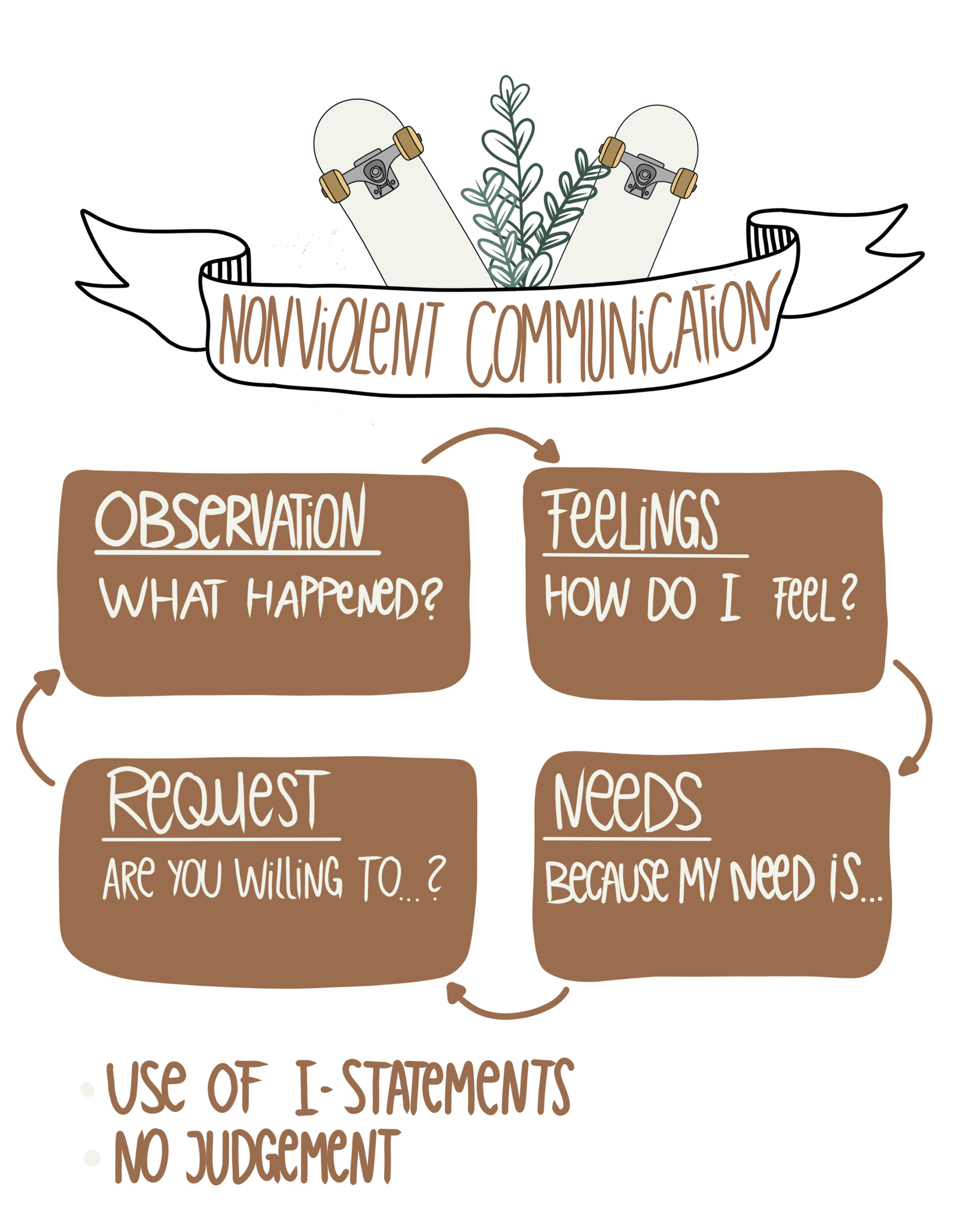 In addition, I will introduce some communication models, some of which I found helpful. Nonviolent-communication and supportive-communication. Nonviolent-communication is a good way to mention problems you experienced with friends and family. It’s a good way to explain yourself and a good way to work out a solution. Supportive communication is something that helps you to talk to someone who is going through a hard time. Lots of people experience fear when someone tells them that they are not fine because they don’t want to make it worse while saying something wrong.
