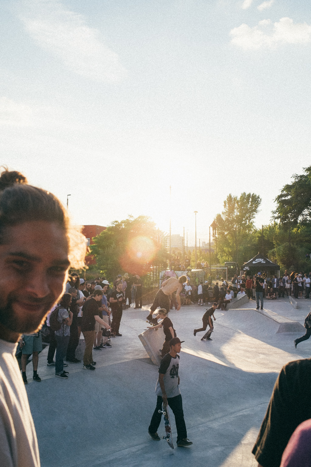 Yesterday the much anticipated Project DSS was completed! To celebrate this in an adequate manner, Nike SB invited everybody for a first open session. After starting with a shoe release event of a Nike SB and Skate Mental collabo at the Civilist Store a shuttle bus directly took the crowd to the brand new skate park. Hundreds of skateboarders and other bystanders gathered together to either skate or just watch this outstanding result of so much passionate work. One could clearly tell from the excitement that the park even outranged the high expectations! With a best trick contest with altogether 1500€ prize money the park was officially inaugurated. Afterwards, the session went on until sunset while drinks and pizza slices were served and music was played. I think I can speak for everyone if I say that the whole project was a great success and brought Berlin for sure its new place to be!