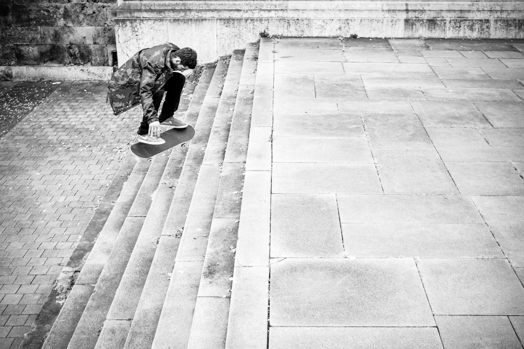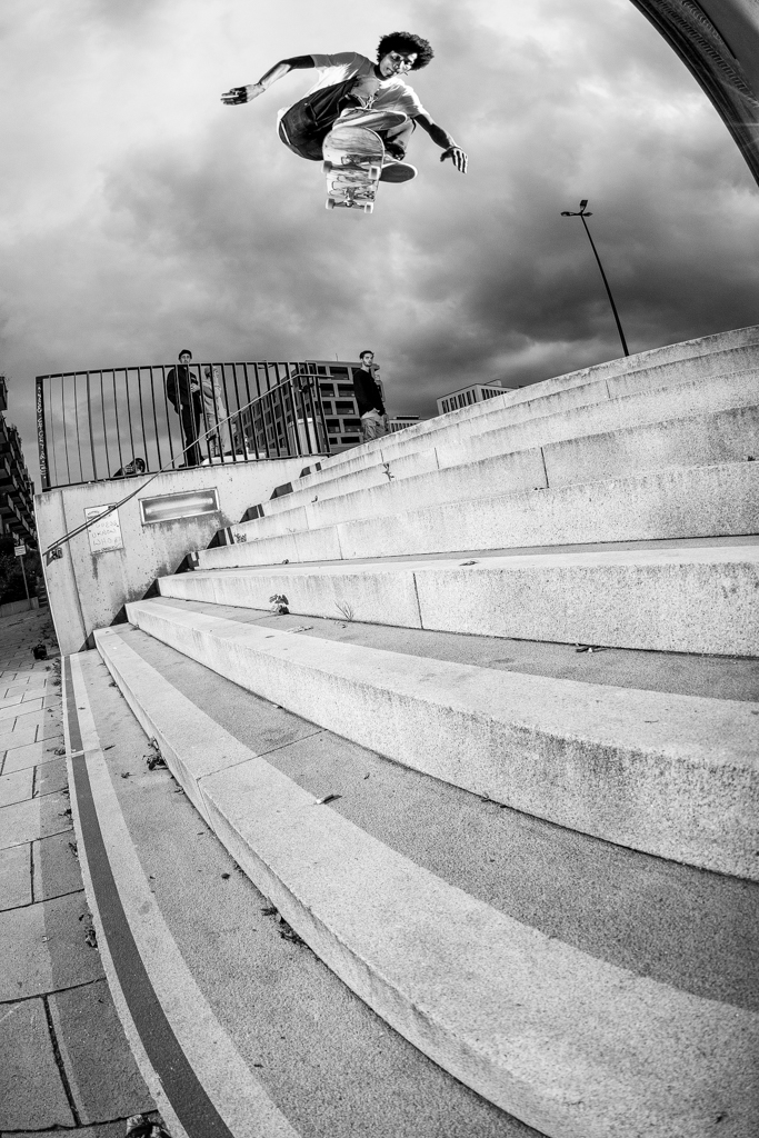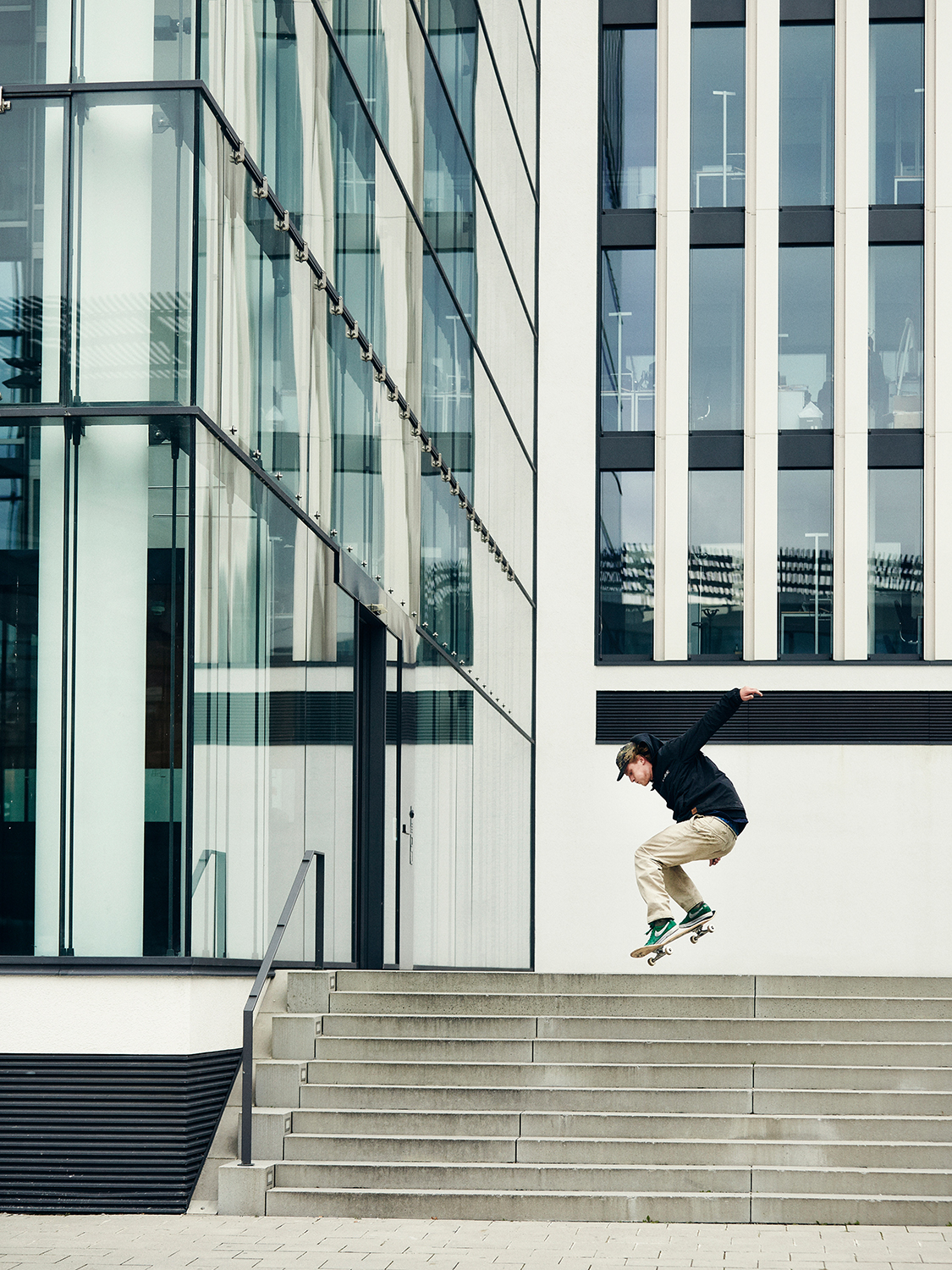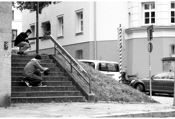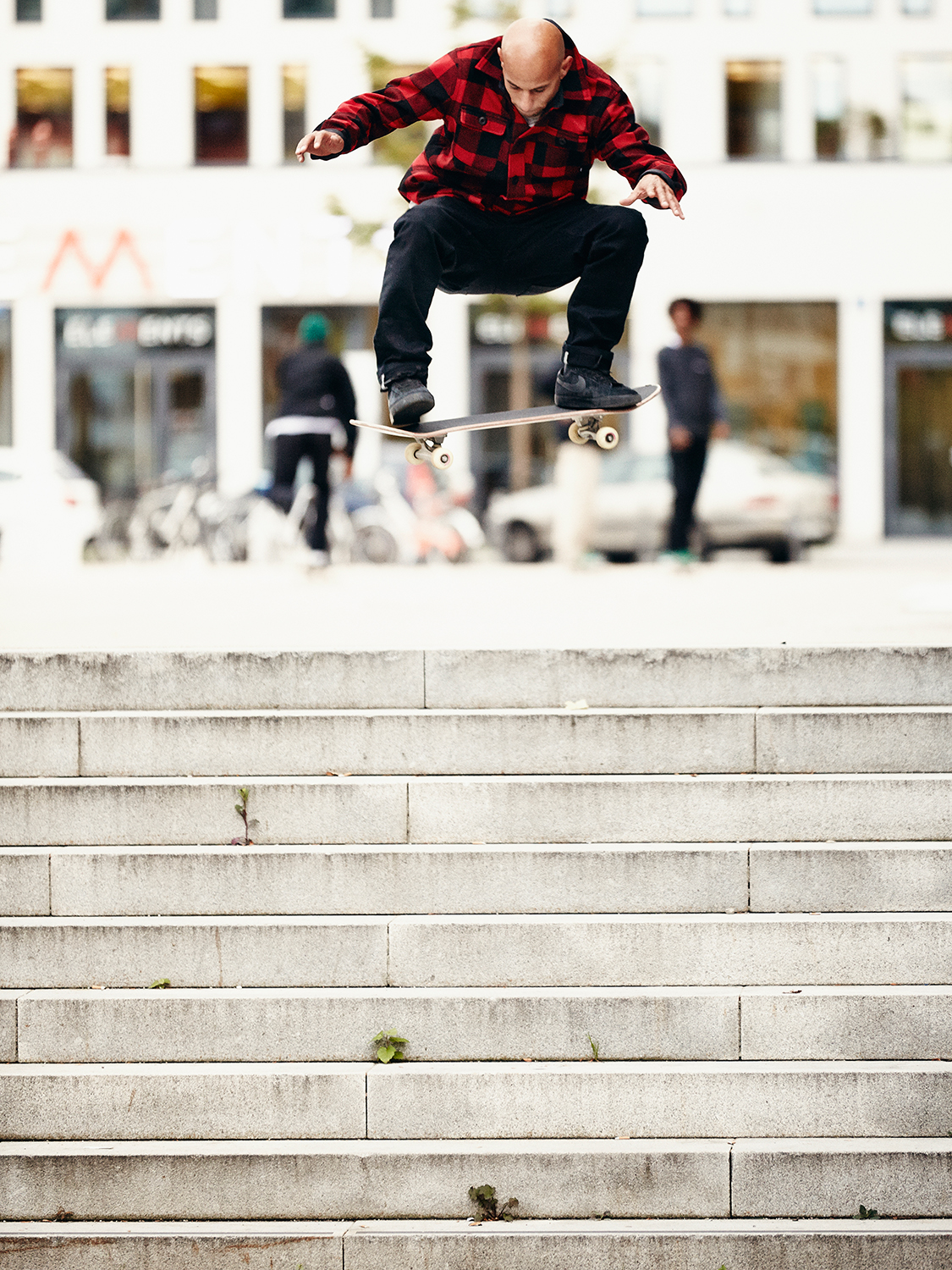 Skating the streets every day and night was and is something we love. You get kicked out of spots, have run-ins with the police and get into confrontations with “concerned” citizens. For this time in Munich, we‘ve been pretty lucky, although we were a crew of 15 people. There was only one bust, which was actually funny: The female security guard screamed so loud at us, that we had to laugh out even louder. “Feierabend!”