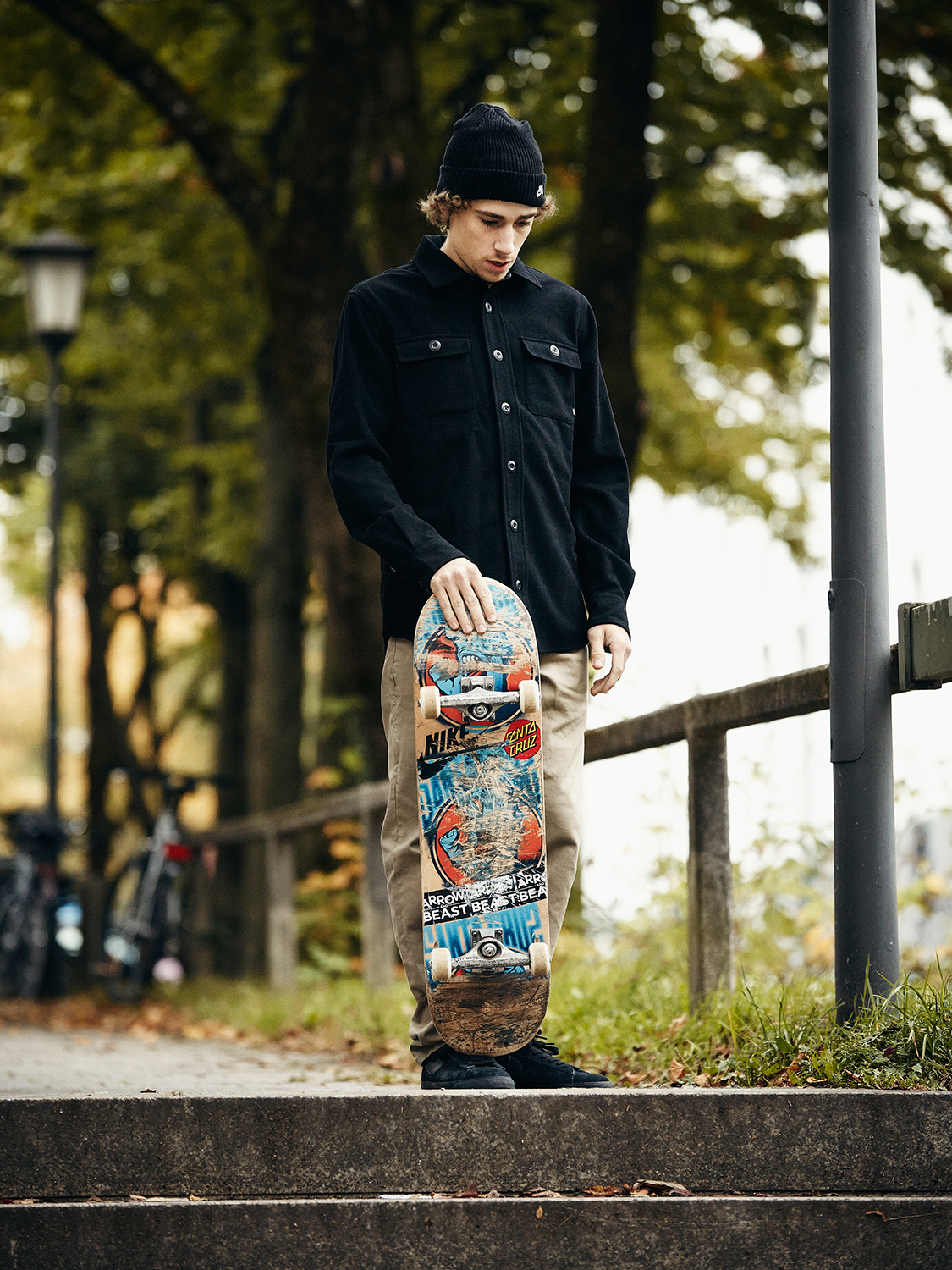 Meanwhile, autumn has arrived here in Germany. The sun sets earlier and it’s getting colder day by day. For this reason, we brought together the shop crews of SHRN, Civilist and, Arrow & Beast for a get-together in Munich, to make the most of these days when everything shines in a beautiful autumn light. The crew consisted of Sami Harithi, Colin McLean, Giorgi Armani, Mario Ungerer, Joscha Aicher, Yaw Kyeremeh, and Erik Müller – all together representing a great mix of styles and cultural backgrounds in the tour van. The occasion for the meet-up was the launch of the Nike SB HO’15 collection.