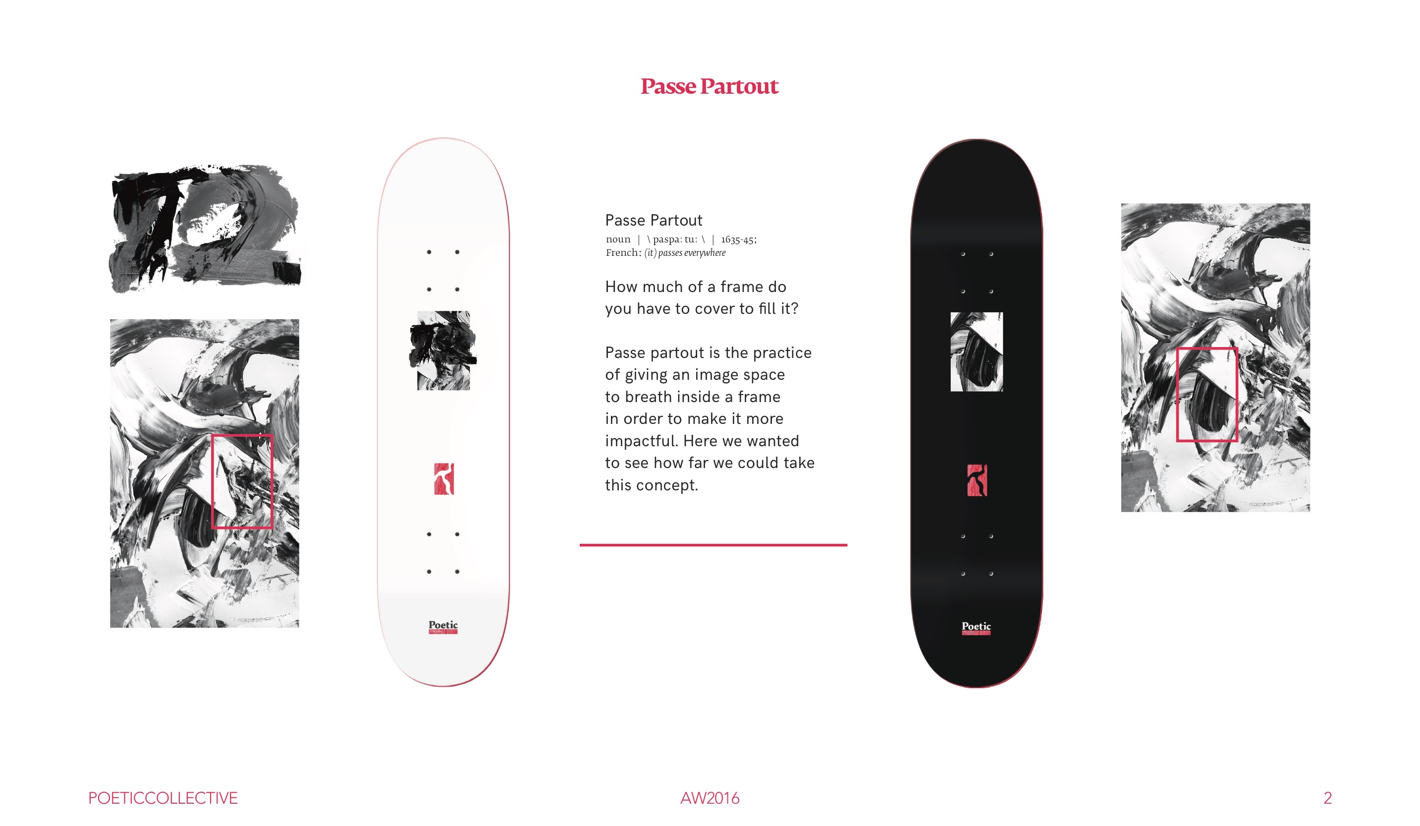 To me, pink for instance has always been the opposite of what is black & white which are like “hardcore cool” and pink transforms things into something else and that is interesting. For a while, though I was doubting the pink on Sarah’s board because it seems almost cliché because she is a female but it actually worked well and she liked it. To me, the pink that we used doesn’t represent gender it represents something softer.