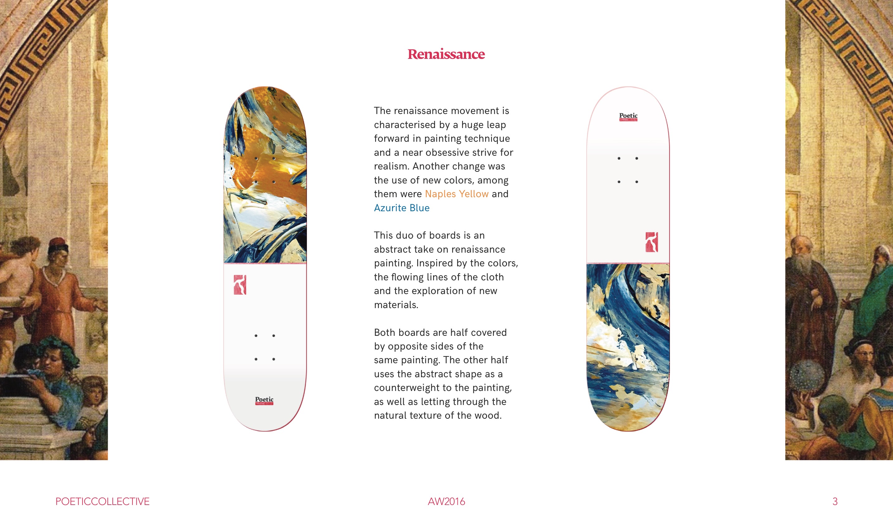 In the beginning, we worked a lot with black and white, which are art references, we also had a red dot in reference to the selling of art but then Free skateboard mag came about and we decided to drop it. But as we progressed there was so much black and white being used in skateboarding that we felt like we wanted to work with colors more. A lot of the colors we use come from paintings and looking at things we want to use color tones that are not that in your face, we want to have it flow nicely together and combine that into something you would want to wear, even as a grown up.