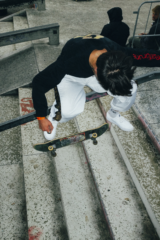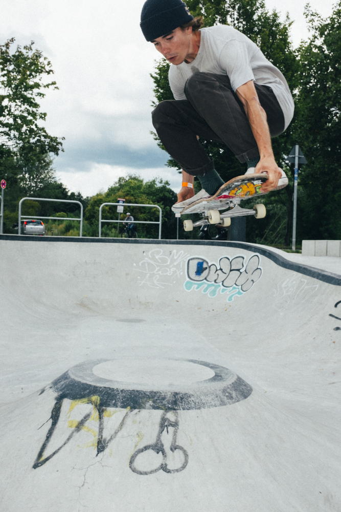 Actually completely random. I was skating the park in D-dorf when Daniel [Ruski] was like: “Yo, let’s go meet up with the other dudes and skate street.” I didn’t know all of the others but was like: “Yeah, for sure.” And Niels was there with his cam – as a side note, that was the first time I ever saw a VX1000 live. And we skated and filmed and he was like: “Yo, would you hyped on filming a small part?” To which I was like: “Fuck yeah! Let’s get it!” And a month or two later he wrote me on Facebook, if I’d be hyped on going to Dortmund to film and I just fare-dodged it on the train there and, yeah, that’s how it started. But back then Europe [Co.] wasn’t Europe [Co.] yet. It was just an idea and a handful of motivated guys.