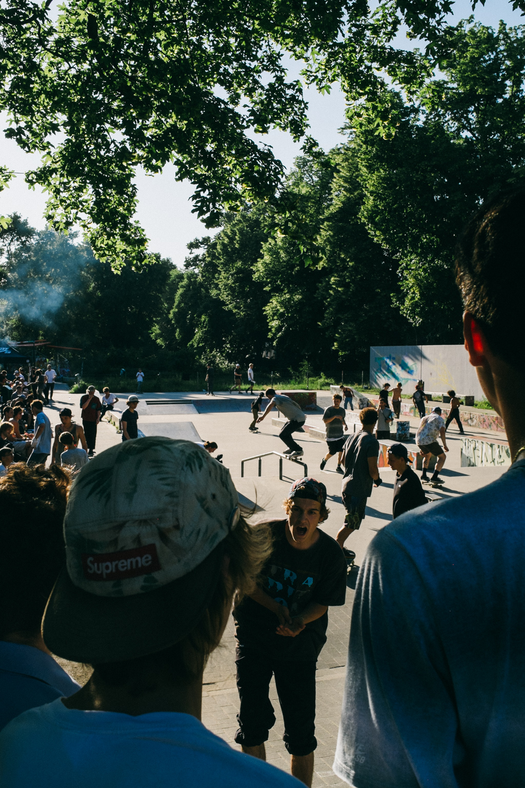 Yesterday the final voting event for Project DSS went down at Ringpark. It was a great success. Once again many locals gathered together to have a say in the construction plan for the expansion of Berlin’s famous DIY spot. While everybody was served cold drinks and grilled food, the session gained momentum and many tricks went down the bigger obstacles of the park. At the end, local hero Max Obert well-deserved could take home the 500€ voucher for Titus Zoopreme, also for the pleasure of his crew mates.