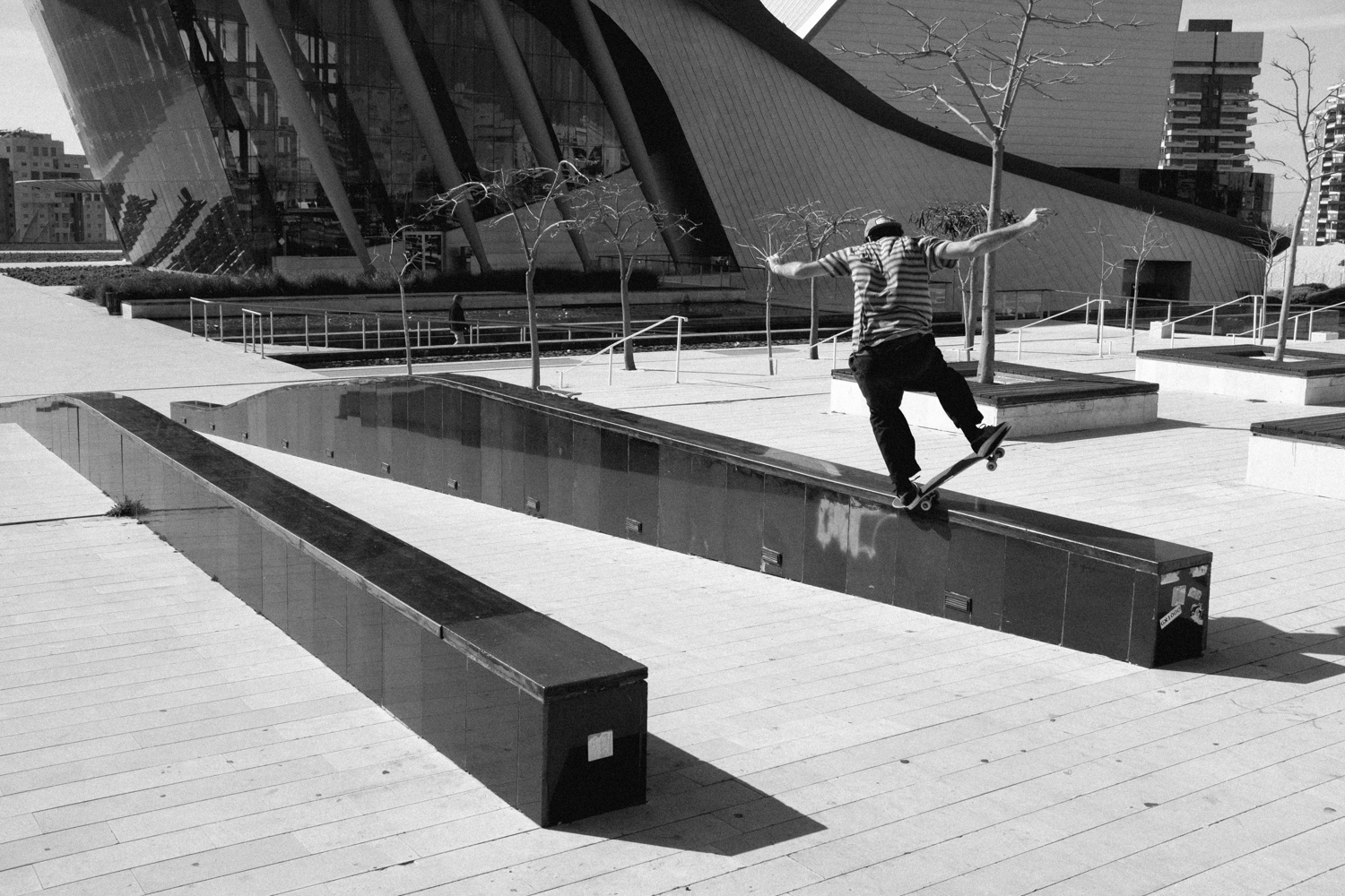 Making decisions is kinda hard, like deciding this is it, now it’s finished. Because you can always keep on working on it or change stuff. Like when you made the final edit, later you watch it and you can think about 20 new things you want to do differently. That’s something I find to be really hard, to make the decision that it’s finished, that I will export it now and not touch it anymore. And while filming for this video the VX always worked fine and never glitched, but this one time in Barcelona, I was filming a pretty good trick from Magic (van Hoogwijk) and some tricks from Pascal, but the whole tape glitched, that sucked. It had to happen at some point… you know it will happen with the VX. But that it had to happen in Barcelona was shitty. But other than that it’s just good memories and good times with friends.