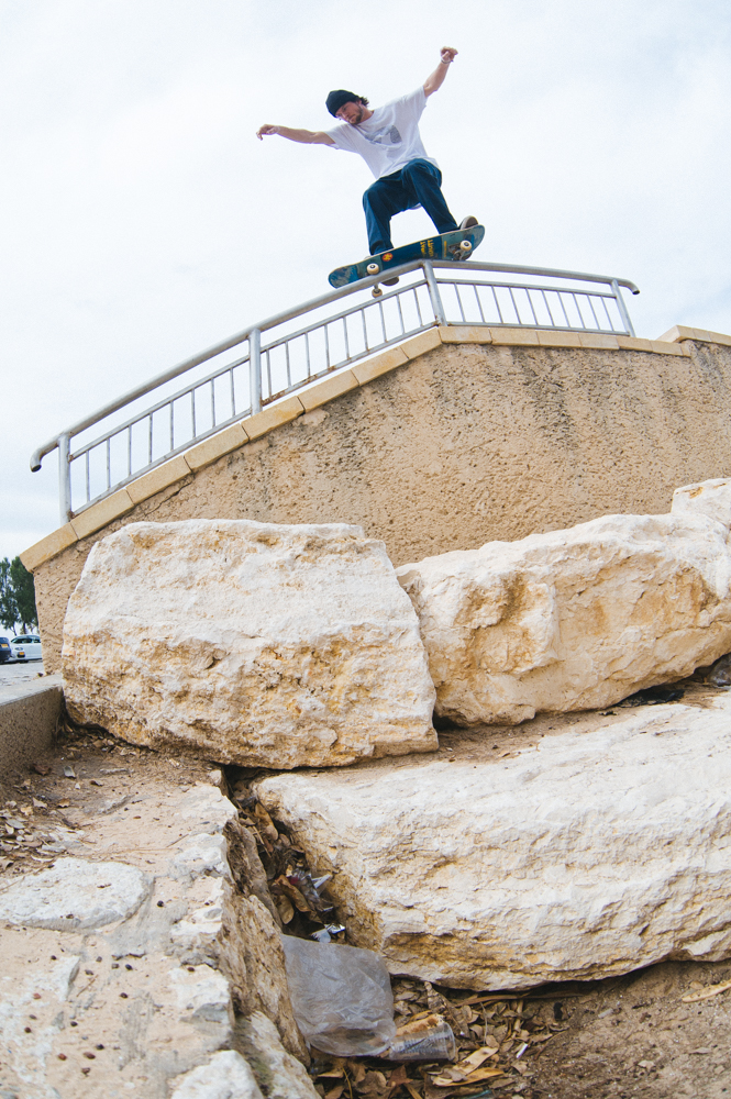 14 – Only one day of rain during our 10-day trip through Israel and even then the Ofer legend came through with spots to skate. Sebastiaan Vijverberg – Fs ollie