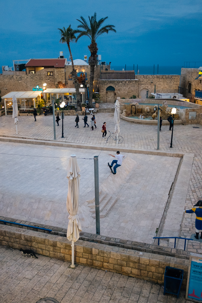 13 – This spot seemed to be the holiest of the holiest places we visited in Jerusalem, we were listening to Ofer’s crazy hip-hop playlist on the boombox while Fabi ollie’ed in the bank.