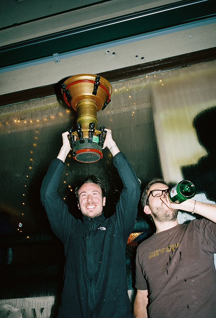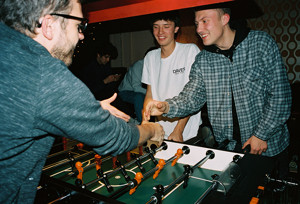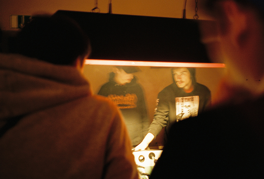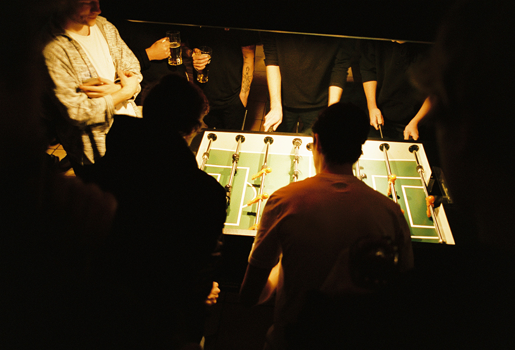 The first piece was this video by Nizan Kasper in which skateboarding and table soccer were connected. The idea being that we as skaters often frequent bars and participate in barroom activities for fun. We found a table soccer bar called “Kickerbar Platzwart” were we could one, record our table soccer adventures and secondly host our event.