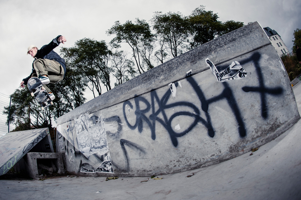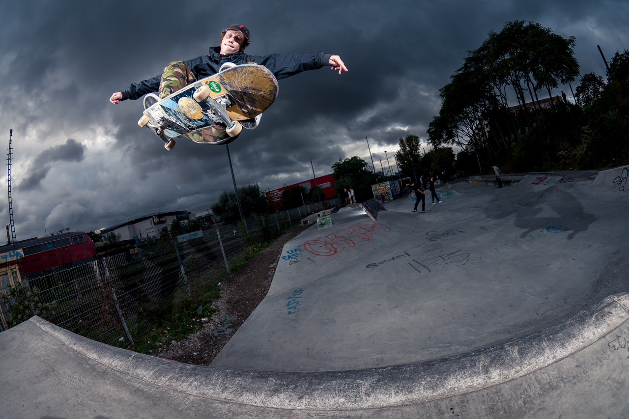“Janoski Max Nike ID colorway in dark mahogany red like the sunset at the Warschauer Bridge above the DSS or the 1,49 Euro red wine drunk by the pseudo punks in front of the Kaisers supermarket around the corner. “Bänke Berlin” on the heels for the spot that influenced my skating, my favorite spot of Berlin in close proximity of the DSS, which, moreover, is also a spot that Jan Kliewer played a major role building.”
