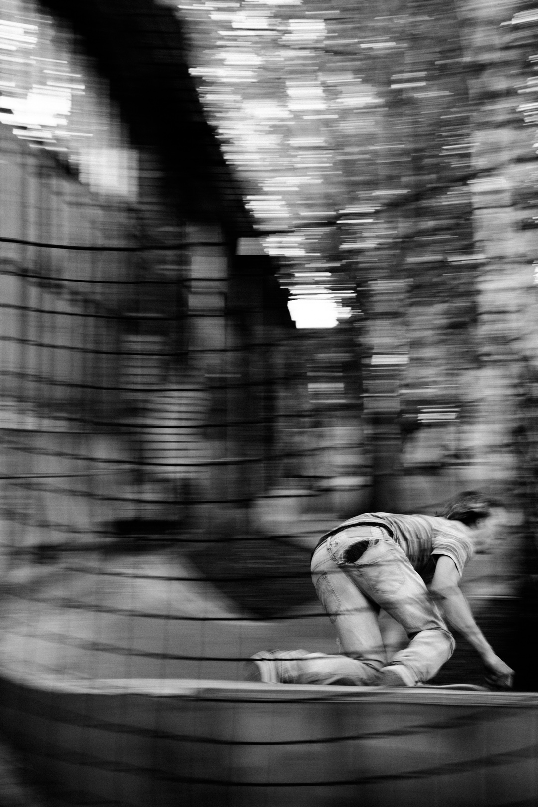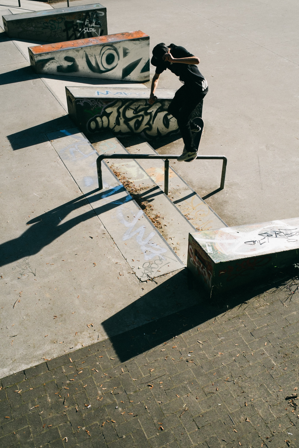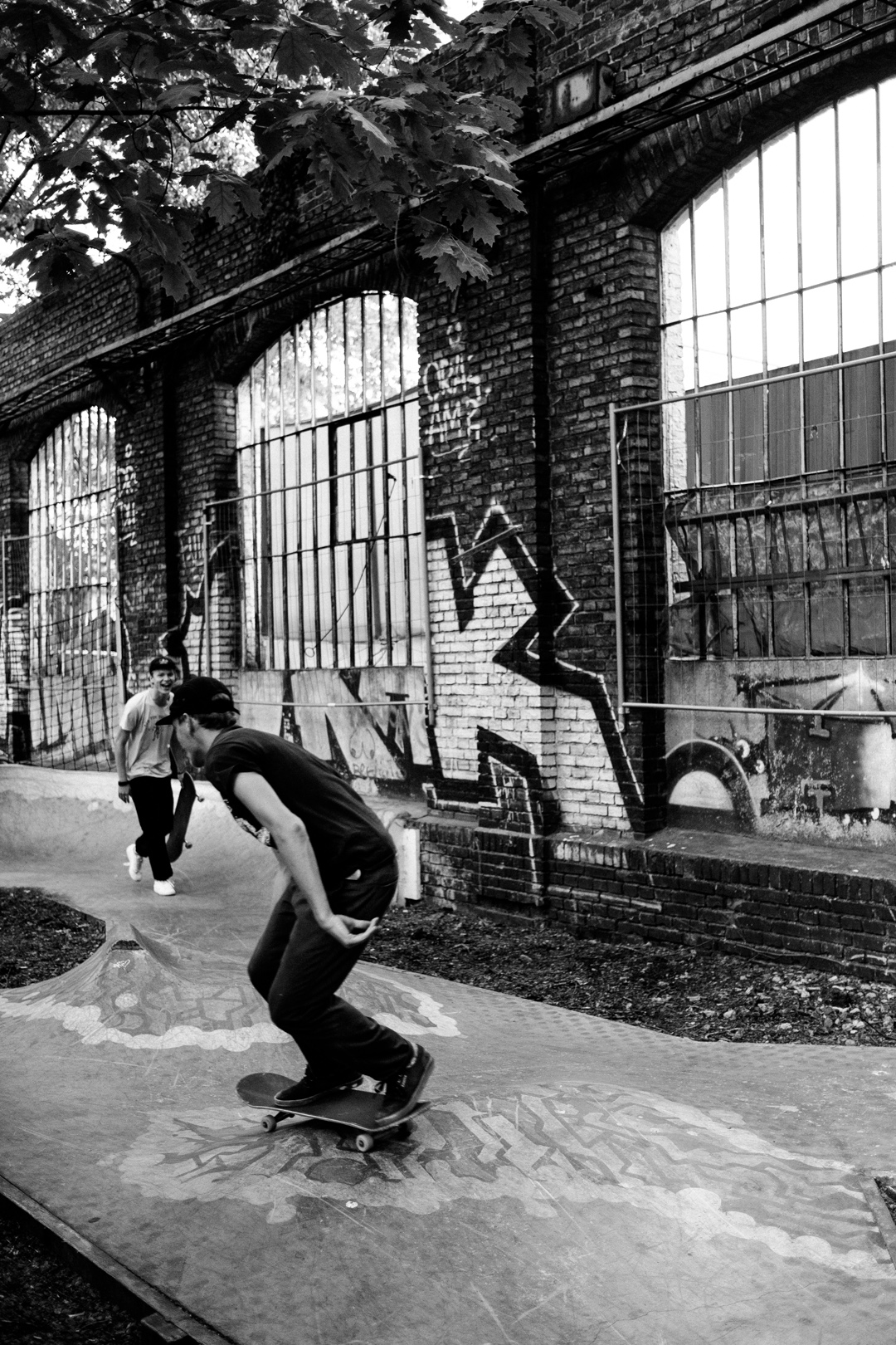 “I kept the basic colors brown and beige fitting to the ground and sand on which the whole project was built. The black lines shall depict the rails of the train that runs right next to the DSS, and thus, belong pretty much to the general view. For the sole I decided for grey speckles, which represent the variety of people on the Warschauer Street next by and also at the DSS itself. There you constantly run into all kind of different people from diverse countries or nationalities that all come for one and the same reason – to skate together at the DSS.”