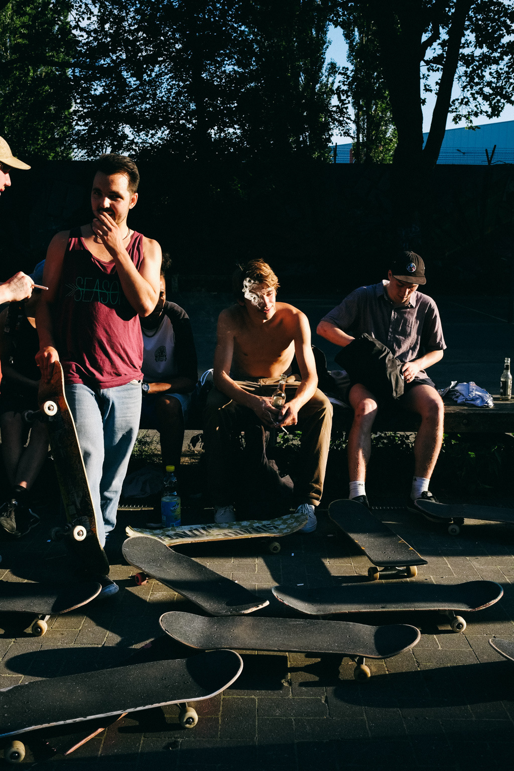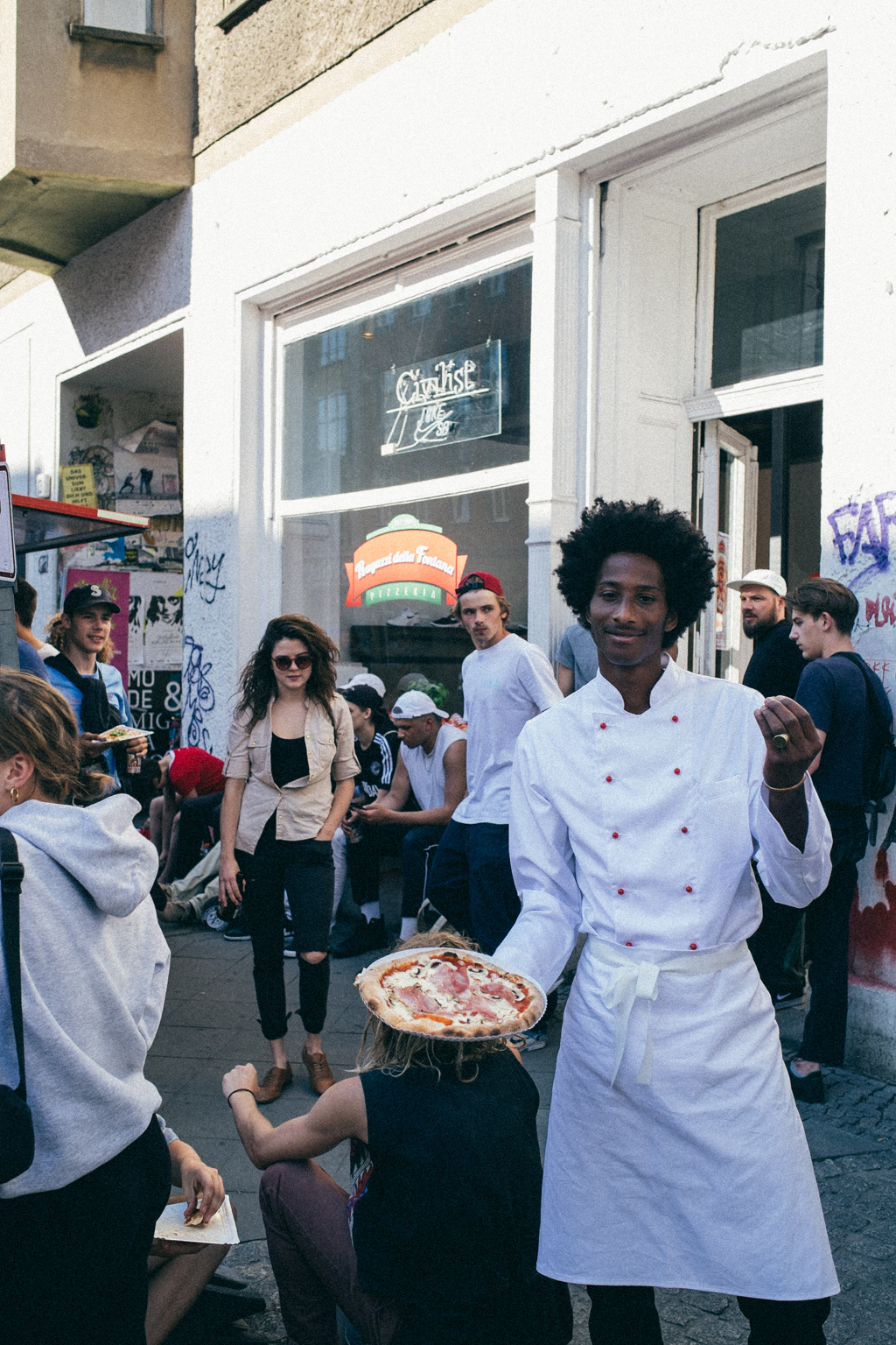 “The white color stands for the new thing, creme for the dog piss, yellowish for the slappy curb, green for the trees of Berlin, black for the marks the skaters are going to leave at the new spot and, last but not least, L.O.O.Q.H stands for “I have a hot ass” in French, which, in turn, means that DSS is the hot spot of Summer 2016.”