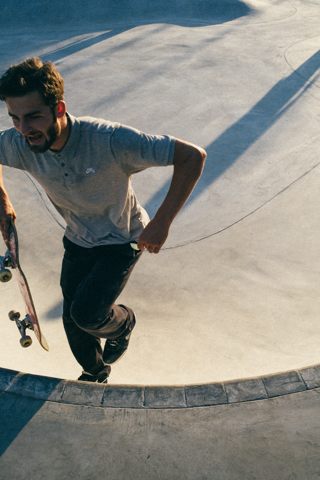 “Doubtlessly, shoes always contribute to one’s own presence and we skateboarders as shoe destroyers per se, therefor, are especially picky and distinct when it comes to our footwear. It has to be stylish, plain and comfortable. The same is true for the skate parks we usually spend whole days at. It’s all about comfort and plainness. A good skate park is never too cluttered with too many obstacles in rainbow colors. It should also be a place to hang with your homies and to have some beers at the end of a day. All this I tried to transfer into my Nike ID shoe design, which is quite simple but still has stylish nuances.”